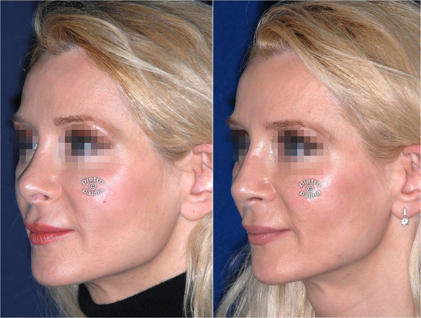 In questi casi è fondamentale effettuare un controllo post-operatorio accurato e regolare perchè, se la diagnosi è corretta, micro-infiltrazioni con corticosteroidi possono dare risultati brillanti. Nel caso si renda necessario un ritocco del naso, si tratta di intervento ambulatoriale, pochissimo invasivo ed eseguibile in anestesia locale. Medesima tipologia di esecuzione anche nei casi di minime imperfezioni del dorso, di inspessimenti locali cicatriziali sottocutanei, di piccole perdite di proiezione e rotazione della punta, per citare le evenienze più frequenti.