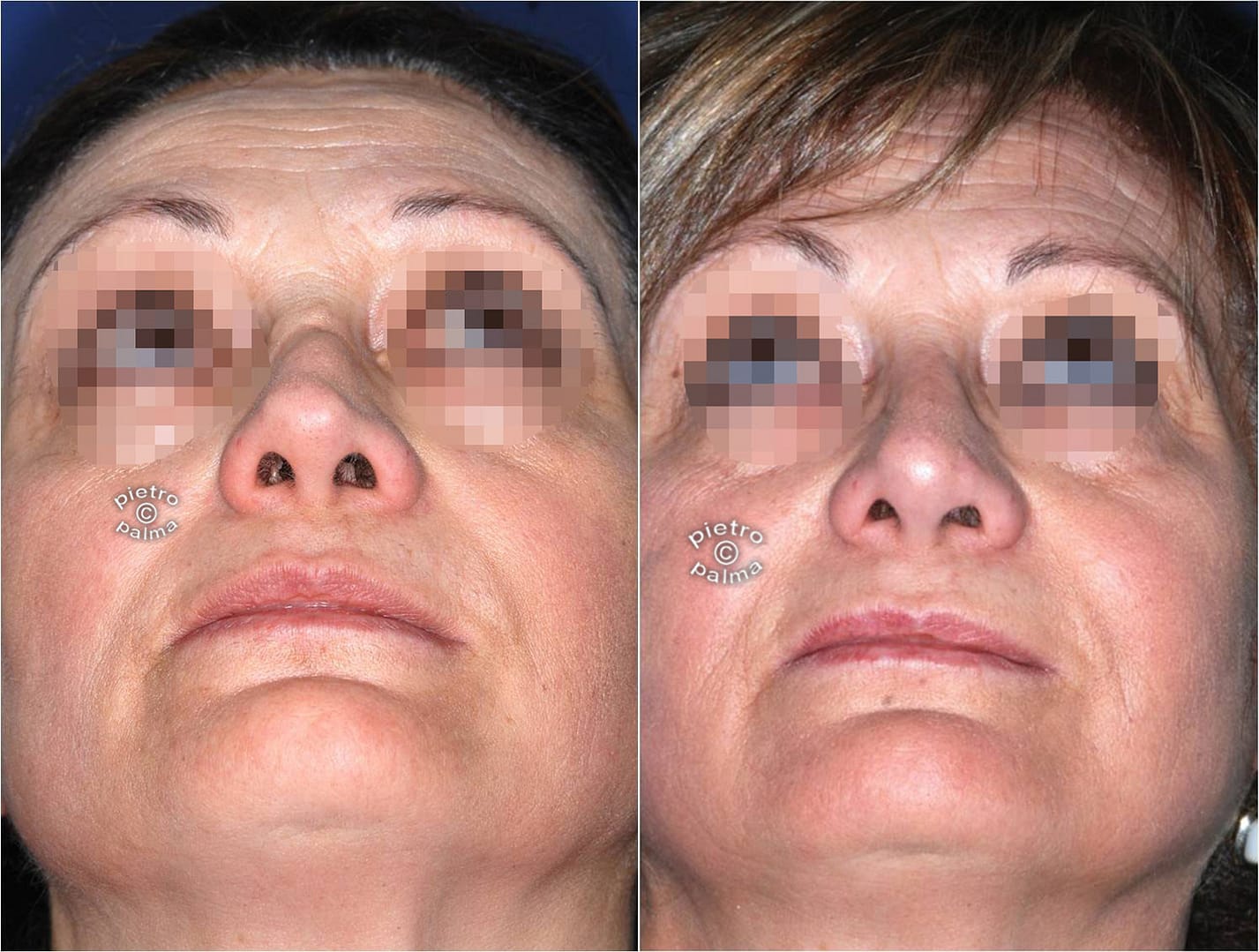 - il “collasso alare”, ovvero una perdita di supporto della pareti alari con ostruzione respiratoria soprattutto in inspirazione e uno sgradevole “pinzamento” delle ali nasali che conferisce un aspetto “operato” e innaturale alla punta del naso